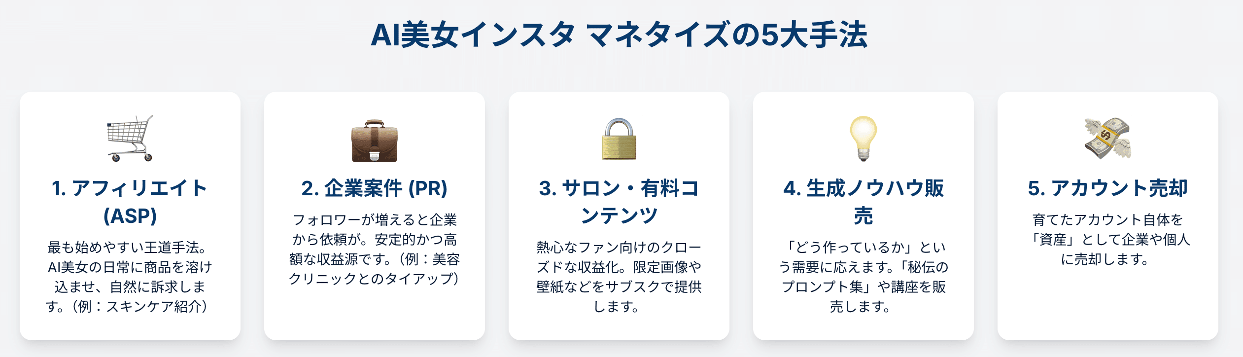 AI美女のインスタグラムアカウントは、その特性上、企業案件やアフィリエイトといったマネタイズ手法と非常に高い親和性を持っています。