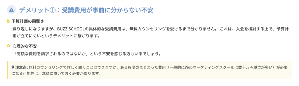 その主な理由としては、スクール側が「受講料金の金額だけを見て、入会するかどうかを安易に判断してほしくない」と考えているからです。