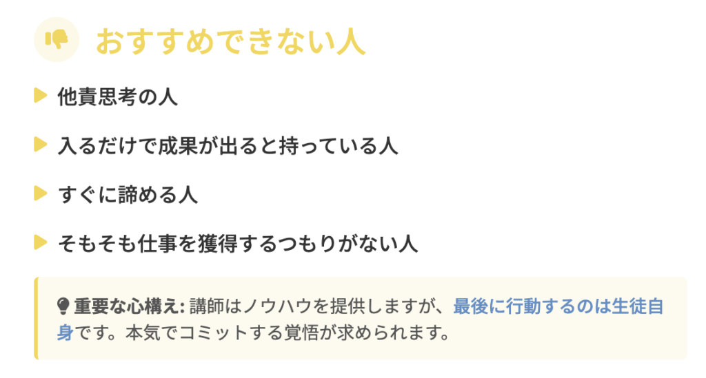 その一方で、「受講料が少し高めに感じる」「自分から積極的に学ぶ姿勢が求められる」といった声も存在します。