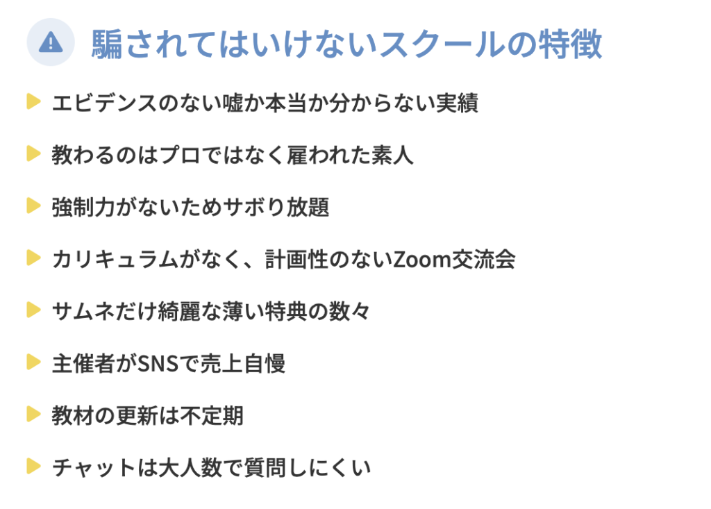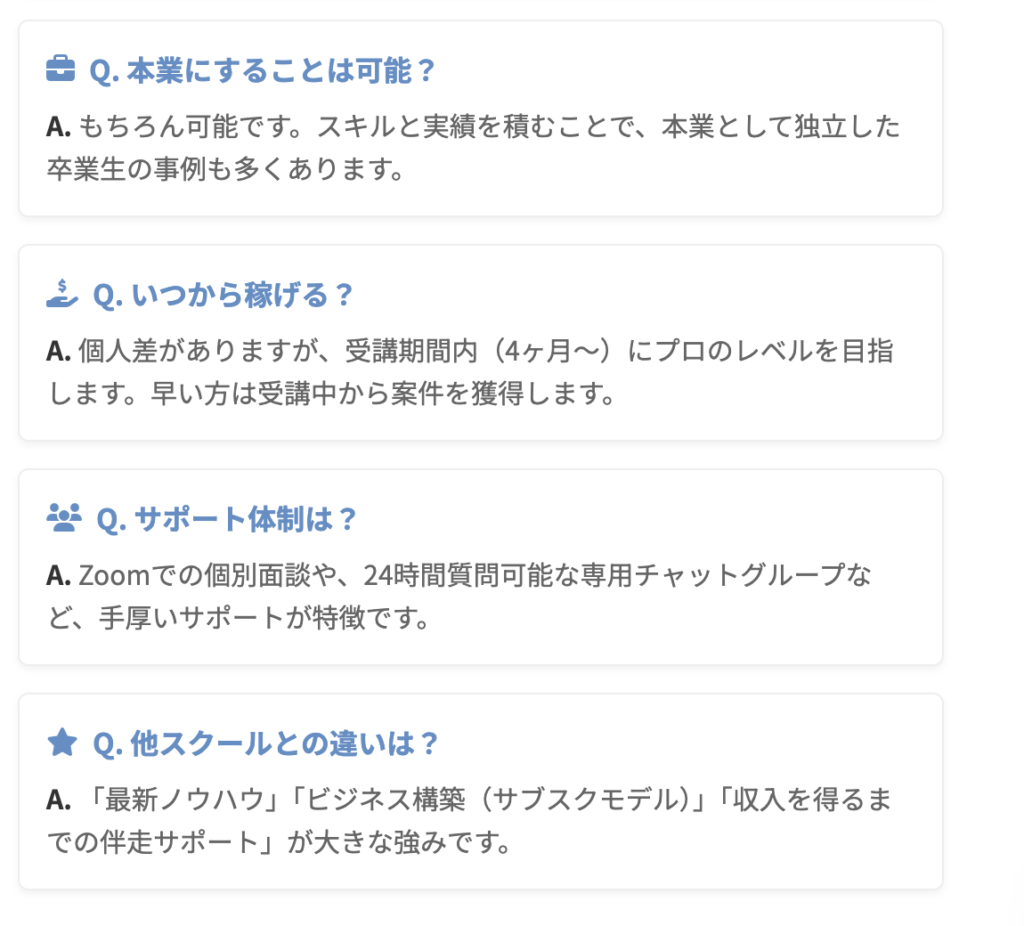 しかし、スクール選びで失敗しないためには、その学習内容やサポート体制、そして実際に仕事に繋がる仕組みが整っているのかどうかを、事前にしっかりと確認することが成功へのカギとなります。