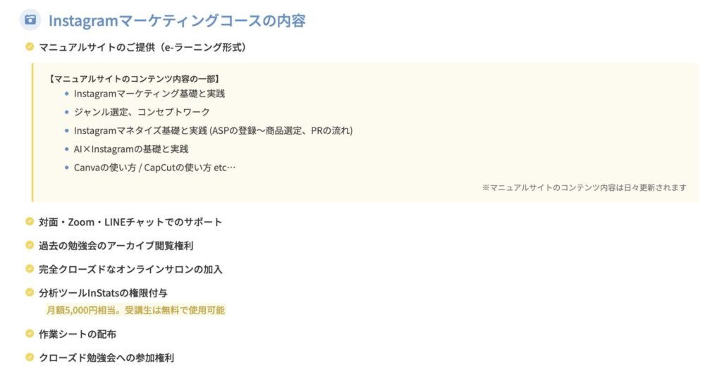 Instagramマーケティングコースの内容