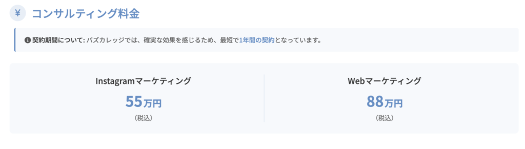 バズカレッジのインスタグラムコンサルティング料金は下記の通り。