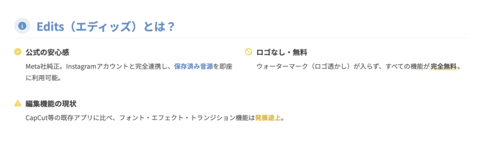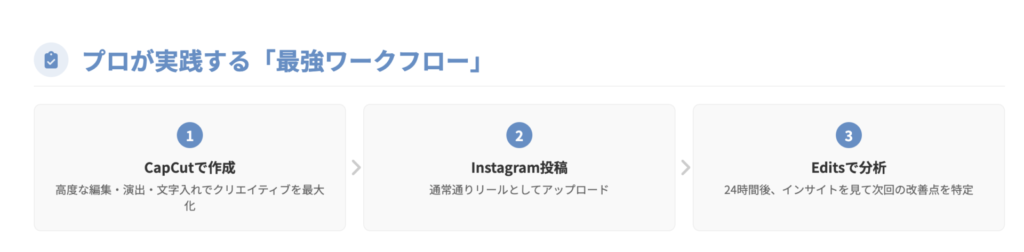 つまり、Editsだけで、現在流行しているようなクオリティの高いリール動画を完結させることは、非常に困難だと言わざるを得ません。
