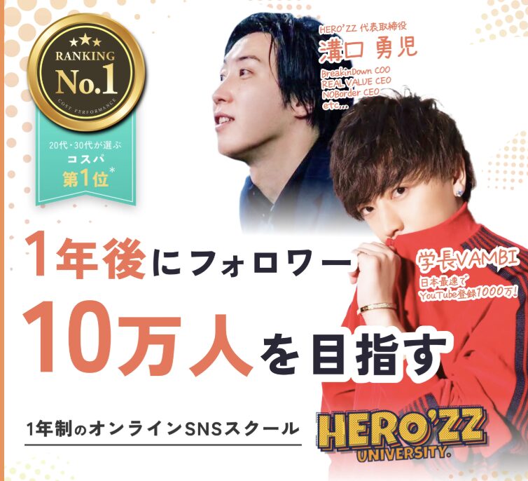 「HERO’ZZ UNIVERSITY(ヒーローズユニバーシティ)」は、人気YouTuberのヴァンビ氏が学長を務める、SNS戦略と収益化に特化した日本最大級のオンラインスクールです。