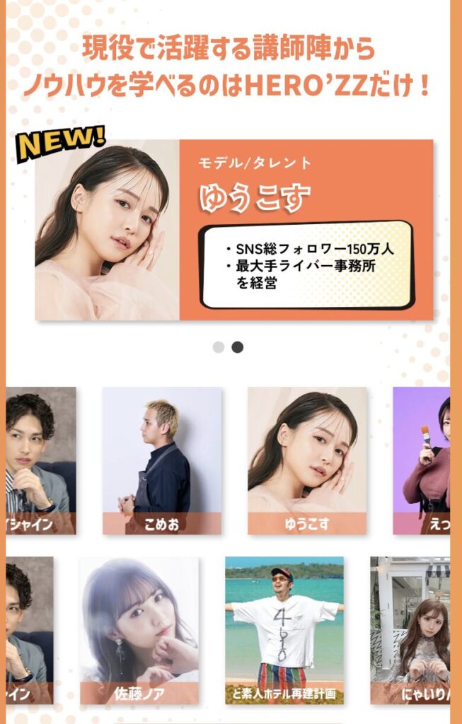 しかしHERO’ZZ UNIVERSITYでは、実際に数十万〜数百万人を動かしている現役のトップインフルエンサーが講師を務めます。