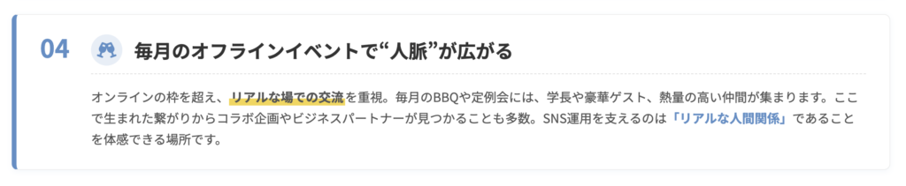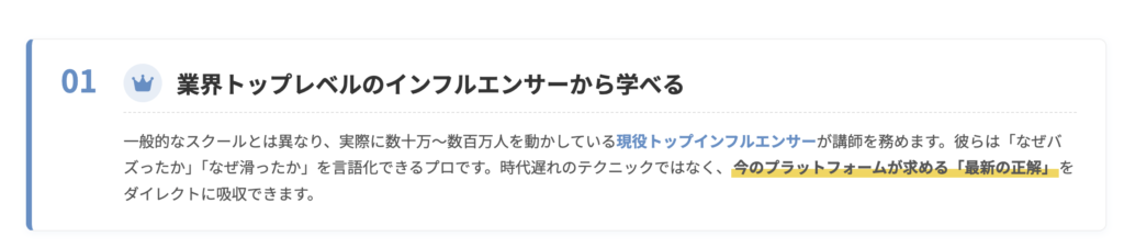 特徴現役トップインフルエンサーによる直接指導とコミュニティ形成