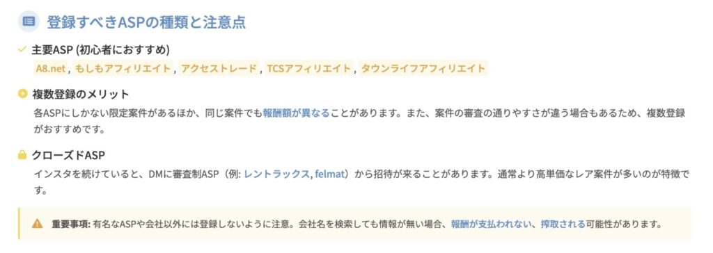 ただし注意点ですが、有名なASPや会社以外には登録しないようにした方がよいということです。