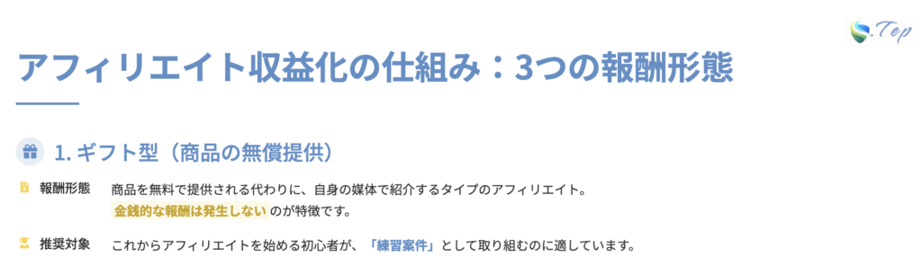 1つ目のギフト型とは「商品を無料でプレゼントする代わりに方向で紹介してください」というタイプのアフィリエイトです。
