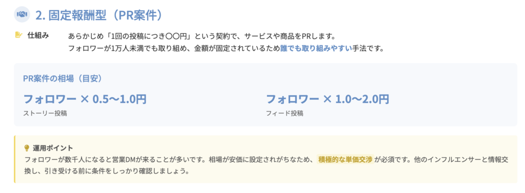 フォロワーが1万人いなくても取り組める方法、かつ金額が決まっているので、誰でも取り組みやすいのではないかと思います。