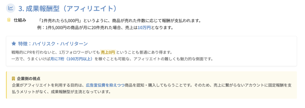 アフィリエイトの中でもたくさんの種類と報酬形態があり大きく3つに分類されます。