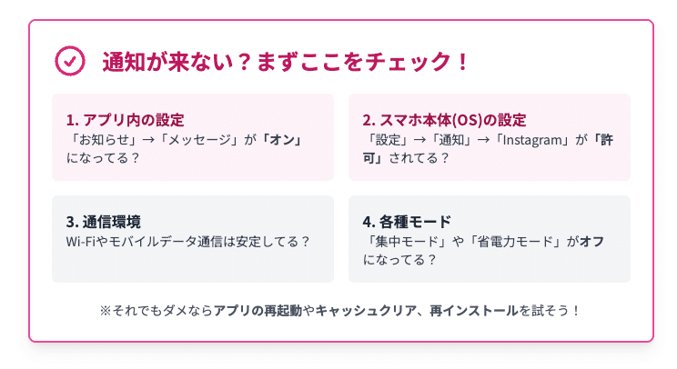これらのアプリ側とOS側、両方の設定を正しく行うことで、iPhoneでも確実にDM通知を受け取れるようになるはずです。