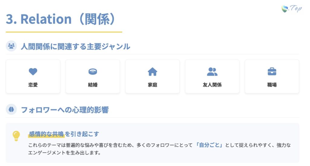 - 広範なターゲット層: 恋愛や人間関係は誰にとっても関心のあるテーマであり、幅広い年齢層や性別にアプローチできるため、多くのフォロワーを獲得することができます。