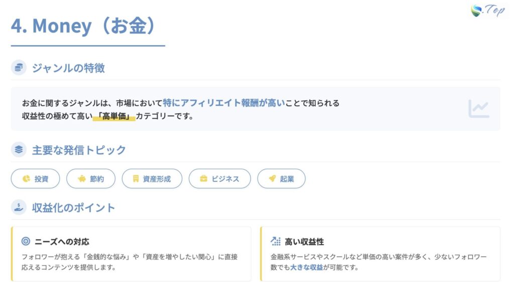 このジャンルは、特にキャリアアップや転職に関する情報発信が収益性を高める可能性があります。