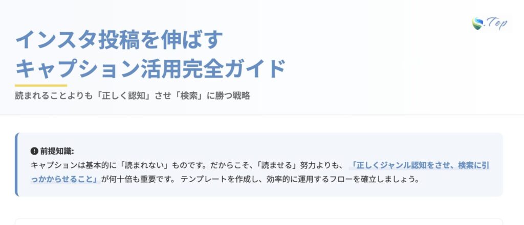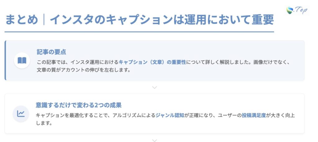 だからこそ、キャプションにまとめを入れておくことですぐに結論を知りたい人が内容を理解して、その結果中身も見てもらえる流れを作れます。