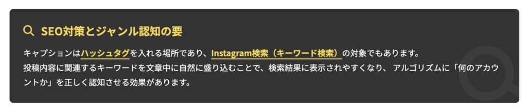 キャプションはハッシュタグを入れる場所であり、内容を補足する場所でもあるから。