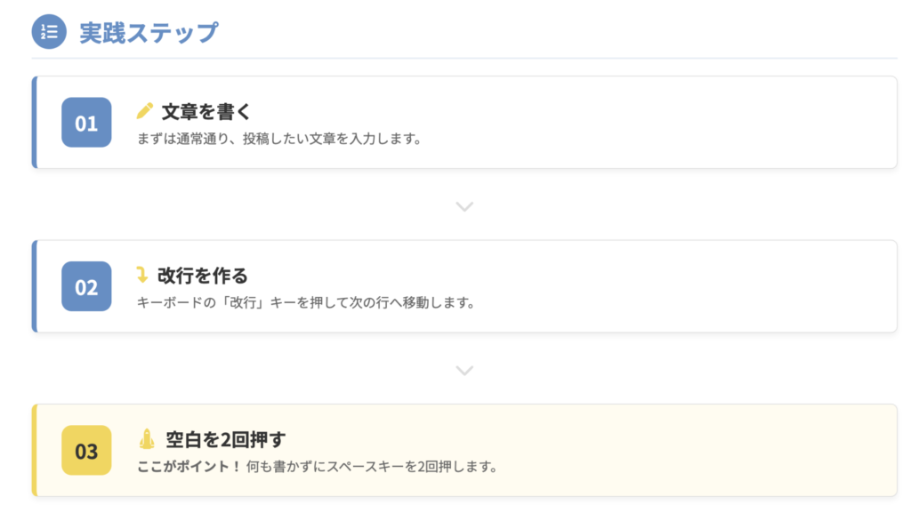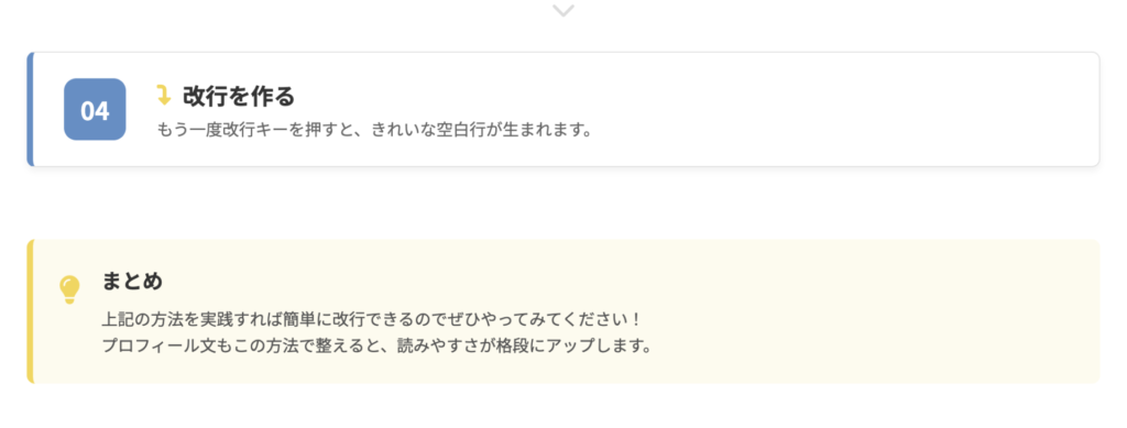 具体的な改行の方法に関しては、下記記事をチェックしておきましょう。