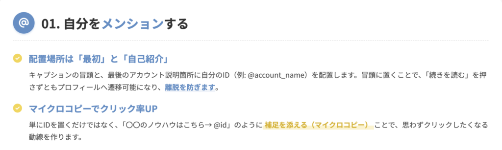 キャプションのいちばん最初にメンションするのは、「続きを読む」を押さなくても見える部分だから。