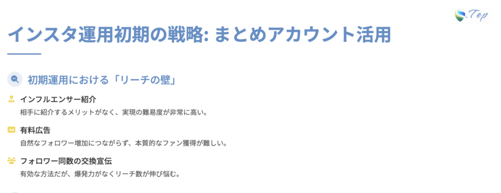 なぜまとめアカウントを利用した方がいいのかというと、運用初期では自分の投稿がよりたくさんの人にリーチしやすいというメリットがあります。