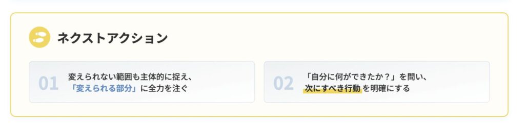 一方自責思考の人はまず自分に責任があることを理解し、それなら次に何をしたらいいのかを考えていきます。