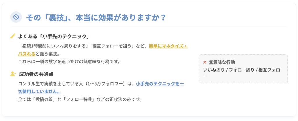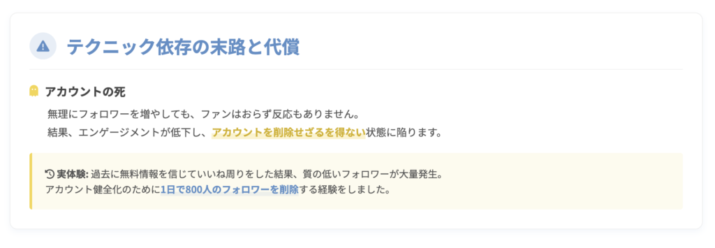 成長も経験も学べない、ただ投稿しているだけなので、何が良くて何か悪かったのかを分析できていない。