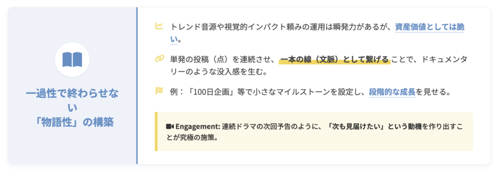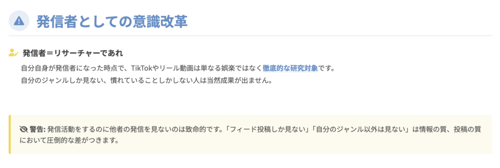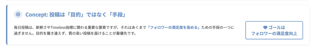 「何を目的にしてその投稿を作成したのか」「この投稿をきっかけにしてフォロワーにどんな状態になってほしいのか」、「そもそもバズを狙った投稿なのかフォロワーに届いてほしい投稿なのか」