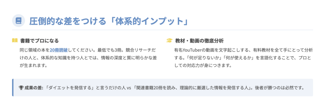 ただ口を開けて情報を食べてるだけでは成長しません。