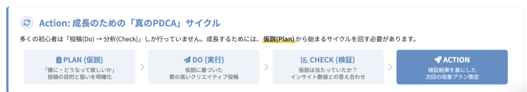 このPDCAサイクルを回すからこそ投稿やあなたのアカウントが成長していくわけです。
