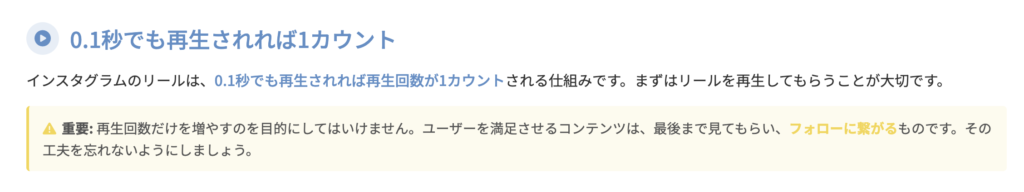 インスタグラムのリールは、0.1秒でも再生されれば、再生回数が1カウントされる仕組みです。