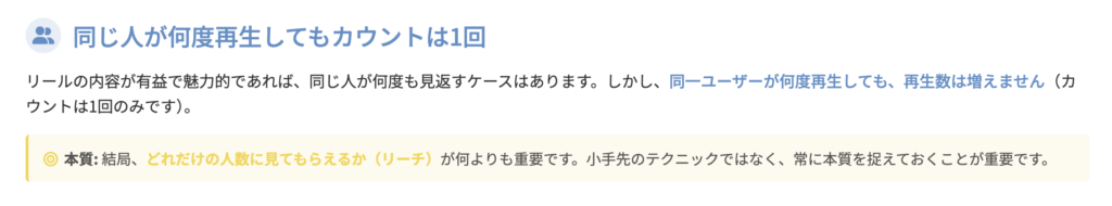 リールの内容が有益で魅力的な内容であれば、同じ人が何度も見返すケースはある。
