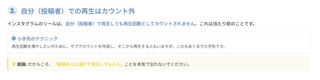 インスタグラムのリールは、自分(投稿者)で再生しても再生回数としてカウントされません。