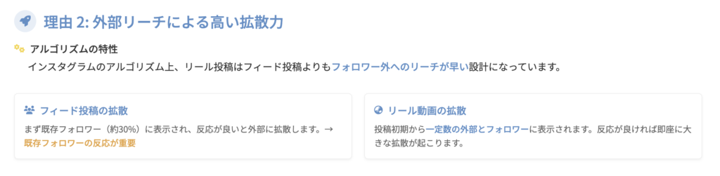 - フィード投稿よりも外部リーチが多いため、伸ばしやすい