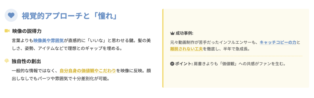 初心者だとクオリティで勝てないインフルエンサーに近づいてしまう、差別化ポイントを作るのが難しい。