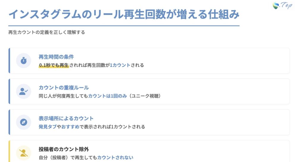 - 0.1秒でも再生されれば再生回数が1カウントされる