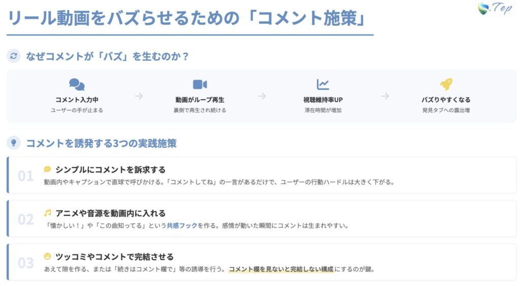 簡単に言えば、バズることが結局重要だしアルゴリズム含めて新規の層に届けることを考える。