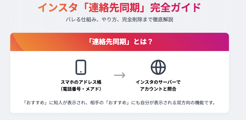この機能は、スマートフォンに保存されている電話番号やメールアドレスといったアドレス帳の情報をインスタグラムのサーバーと連携させ、現実の知人を見つけやすくするためのものです。