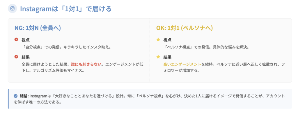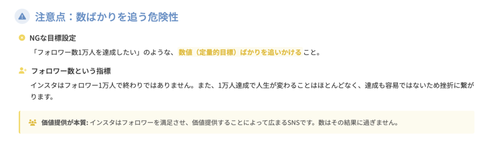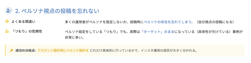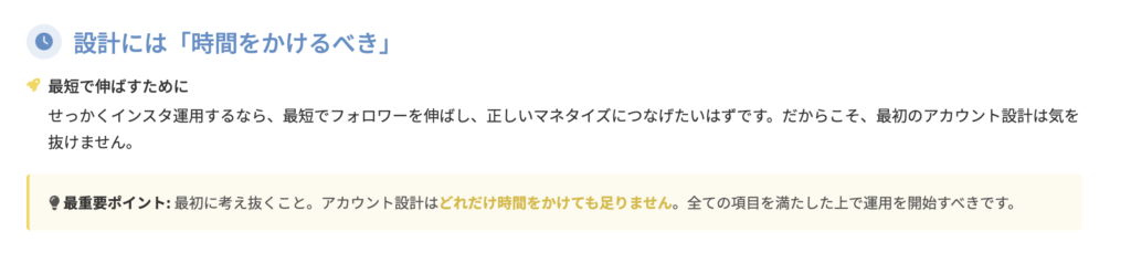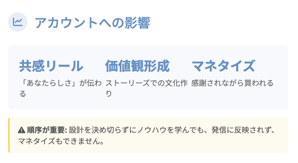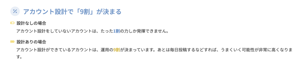 だからこそアカウント設計をしていないということは土台がない、つまりアカウント設計をしないと運用していてもすぐにブレてしまうし結果的に挫折してしまうということになります。