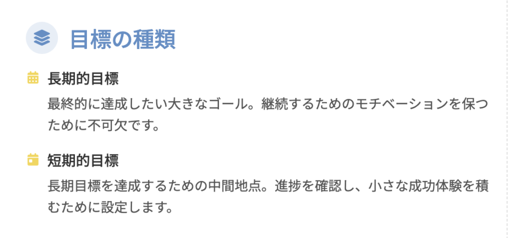 長期的・短期的な目標を持っていないと、継続のモチベーションが保ちにくいですよね。