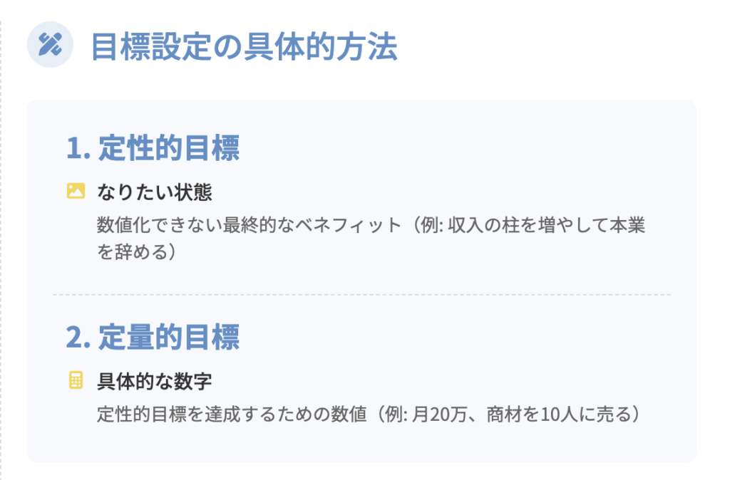何を目指すかを決めておくことは基本なので抑えておいてください。