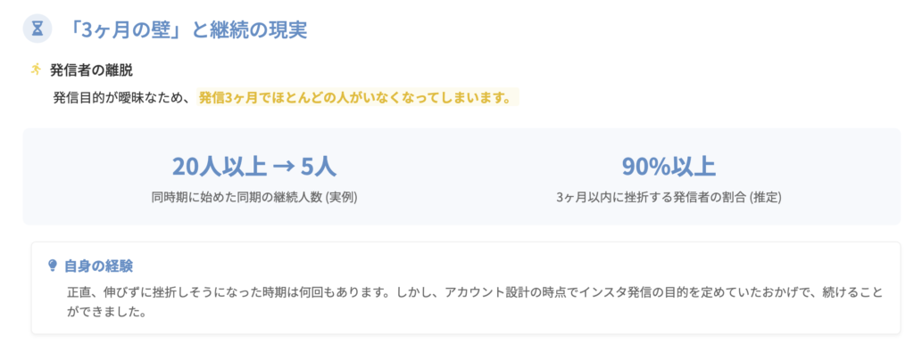 しかし、Instagramで発信する目的がないまま運用すると必ず途中で挫折してしまいます。