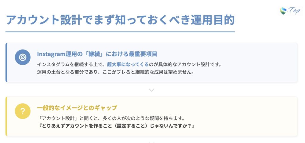 それと同じようにインスタというところの中でアカウント設計は全ての運用の土台一番下に位置するものということです。