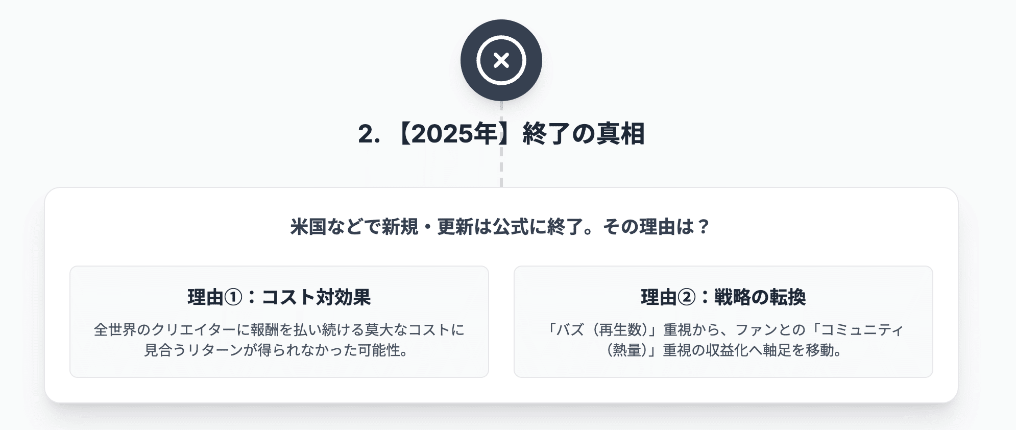 単なる情報の羅列ではなく、なぜこの制度が生まれ、どのように運用され、そしてなぜ今「終了」と言われているのか、その背景にあるプラットフォームの戦略やクリエイターが直面した現実を、深く掘り下げていきます。