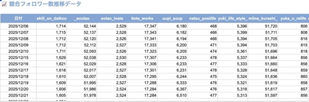 自分がベンチマークしている競合アカウントを登録するだけで、毎日データをツールが勝手に巡回・収集します。