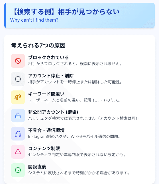 【ケース別】インスタで特定の相手を検索しても出てこない7つの主要な原因