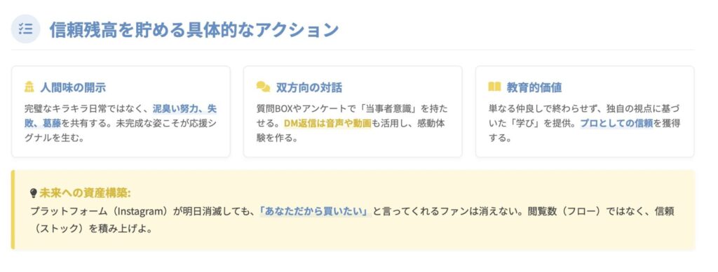 「ちょっと失敗したかな」と思っても、明日には消えているという安心感が、日々の発信を継続させる大きな原動力となるのです。