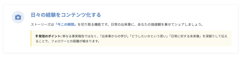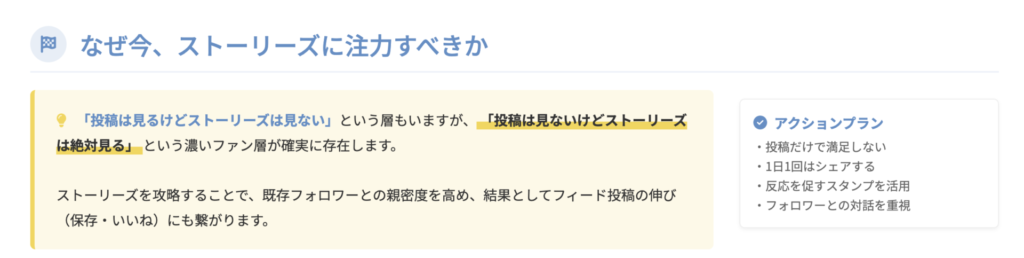 - 毎回見たくなる・反応したくなるストーリーズ運用を心がける