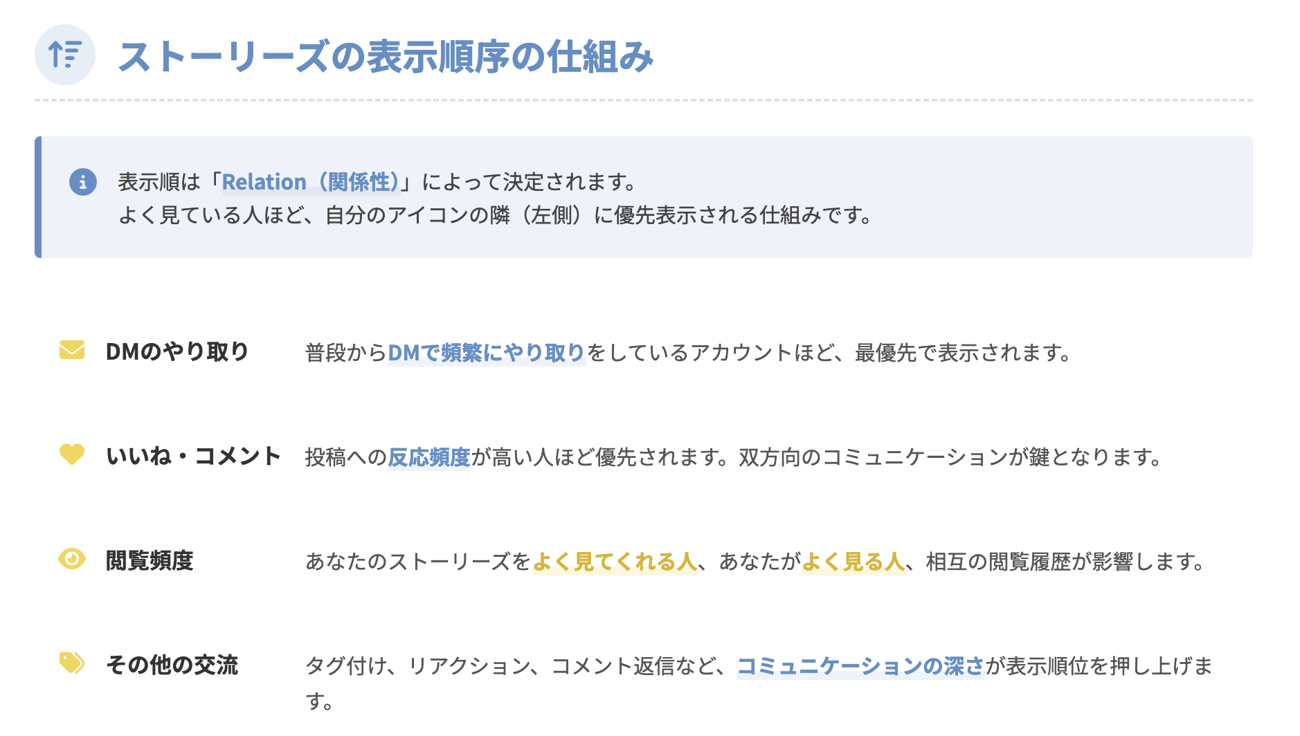 そして新しくストーリーが見られやすくなって投稿も伸びる好循環が生まれるわけです。