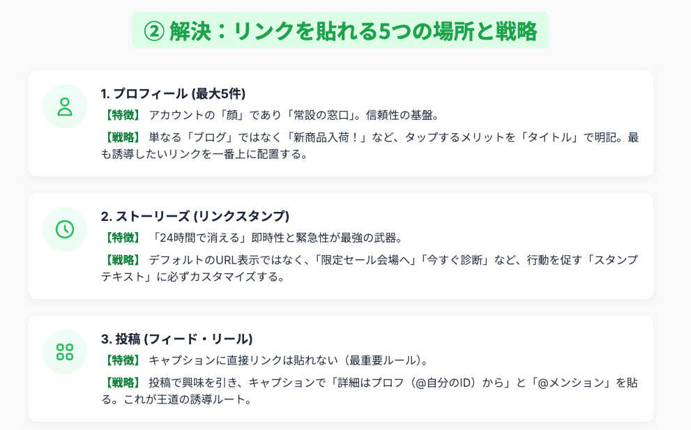プロフィール、ストーリーズ… リンク設置場所の「意味」を理解する重要性