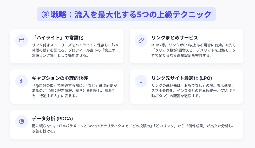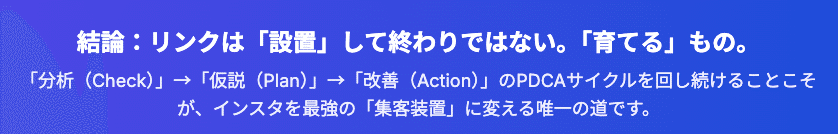 この「文脈」を設計することこそが、インスタグラムにおけるリンク戦略の核心であり、専門性が問われる部分なのです。