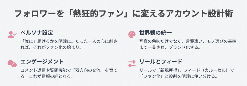 それだけで、フォロワーはあなたのアカウントを**一つの「ブランド」**として認識します。