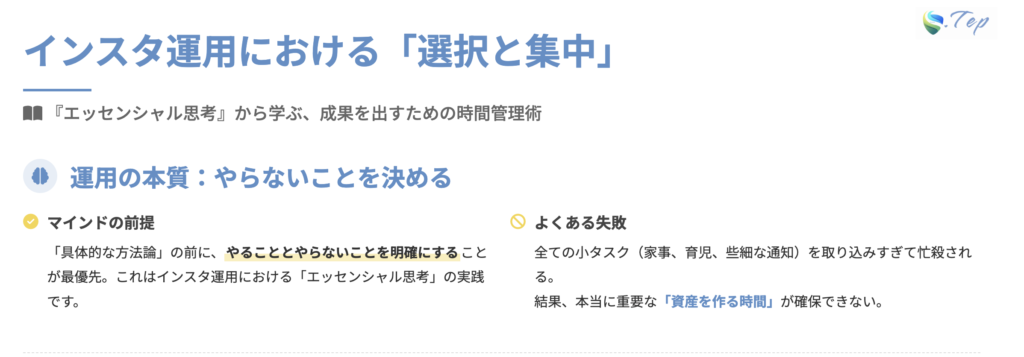 特に運用初期ではTimeless、つまりの投稿頻度が非常に大切なので、できることなら毎日投稿したいところ。